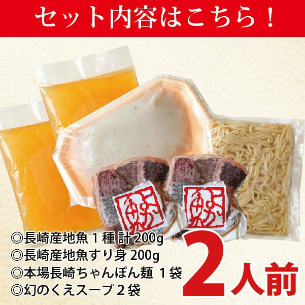 ギフト対応について>>> 内 容 長崎産旬の地魚1種 計200g:コショウダイ、ナベタなどからすり身200g×1パック:いとより・すけそうだら・えそ・食塩・卵白・アミノ酸等・ソルビン酸K (卵含む)ちゃんぽん麺 140g(小麦含む)くえスープ2袋(小麦含む) 水揚 加工 地魚について水揚:長崎県五島、九十九島近海加工:長崎県佐世保市高島町663-10 賞 味 期 限 冷凍 3ヶ月 冷蔵 3日 保 存 方 法 冷凍又は冷蔵 包 装 のしは無料でお付けします。